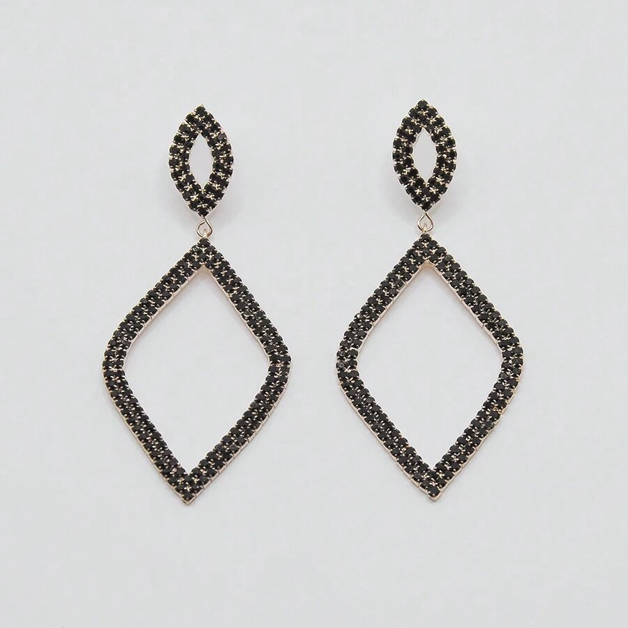 1pair Exaggerated Fashionable New Design Geometric Shape Black Claw Chain & Rhinestone Ear Jewelry Earrings Suitable For Women'S Daily Wear