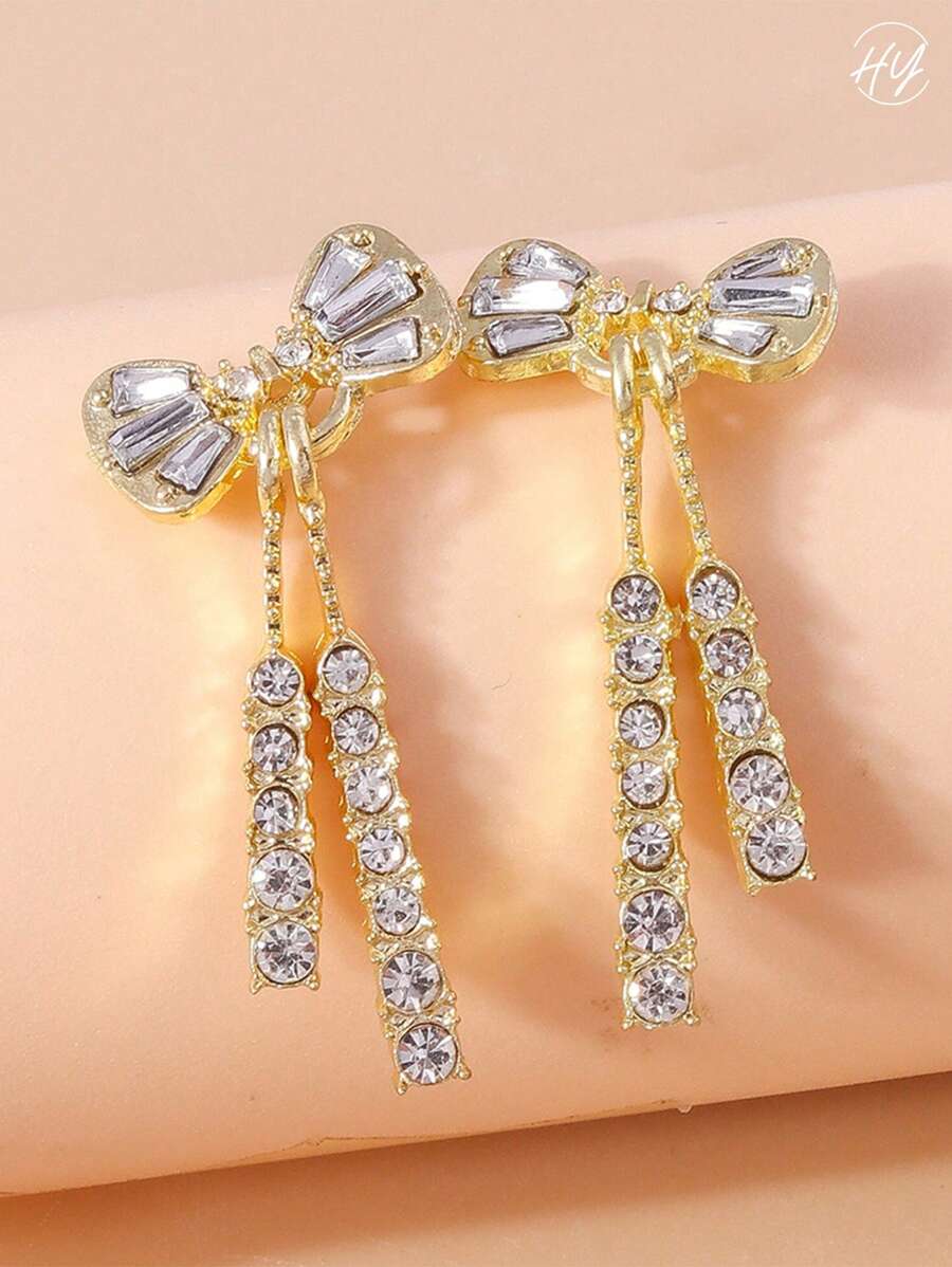 1pair Exquisite Stone Decor Minimalist Design Elegant Dangle Earrings