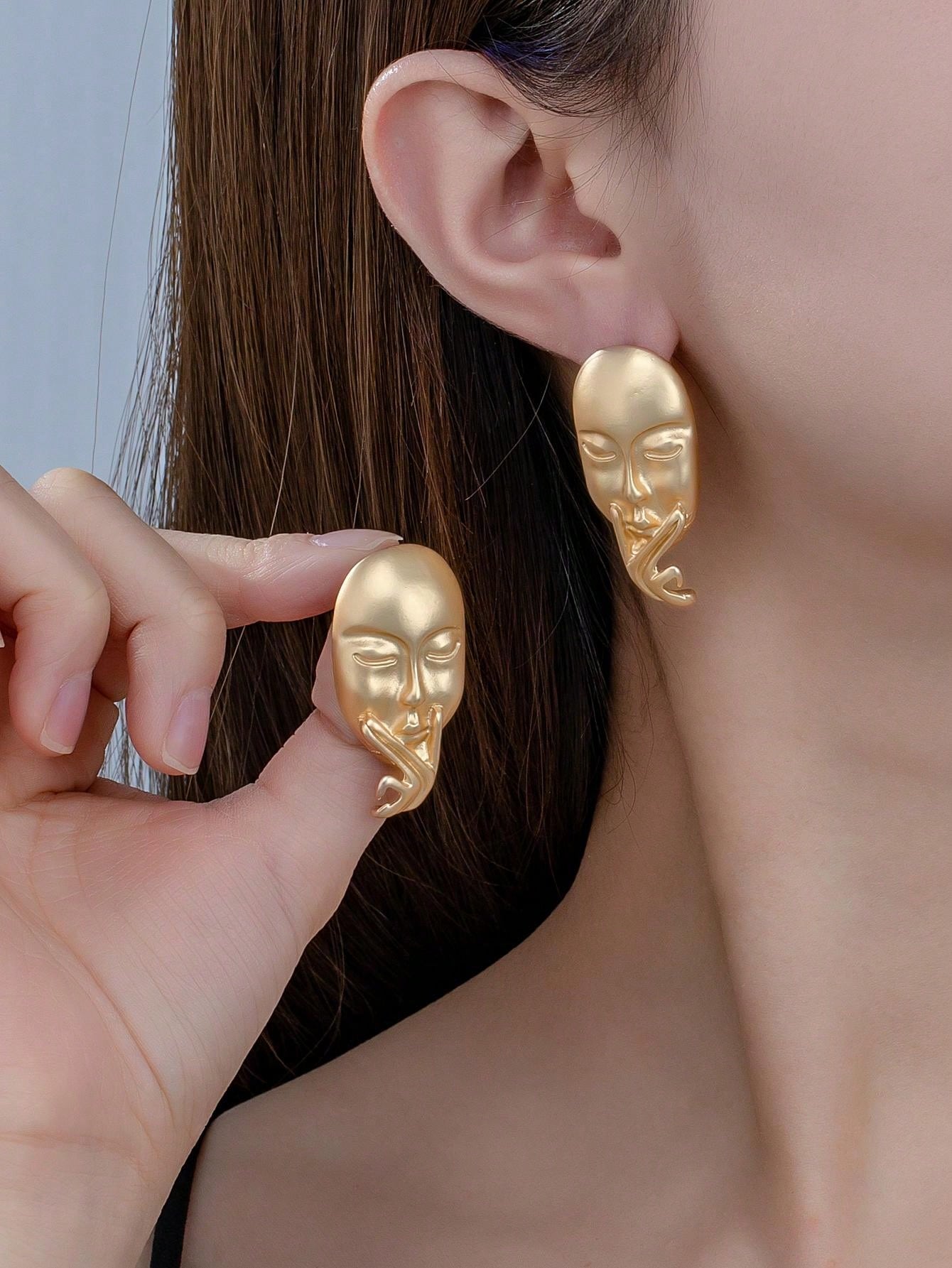 1pair Fashion Personalized Simple Temperament Vintage Cartoon Style Palm & Face Shaped Metal Stud Earrings