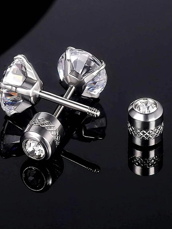 1pair Fashion Stainless Steel Cubic Zirconia Decor Stud Earrings For Men Women For Daily Life