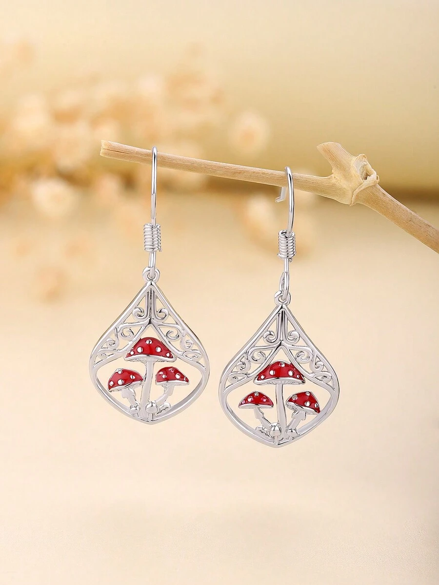 1pair Fashionable & Delicate High-End Jewelry Plated White Gold 925 Silver Mushroom Earrings Suit For Daily Wear, Holiday Party Gift, Simple & Comfortable