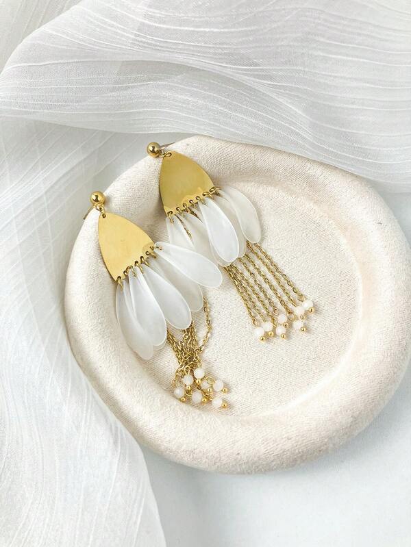 1pair Fashionable And Exquisite Stainless Steel Gold-Plated Colored Acrylic Tassel Dangle Earrings, Suitable For Women To Wear At Parties And As Holiday Gifts