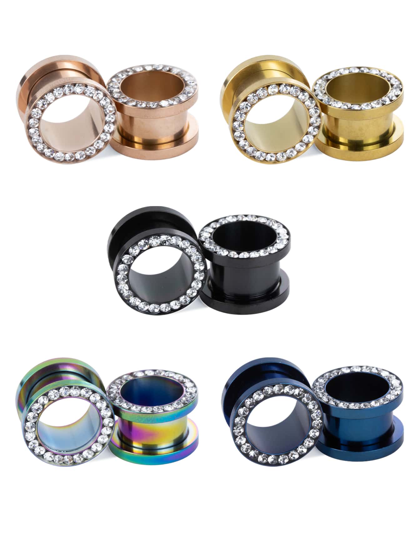 1pair Fashionable And Trendy Stainless Steel Ear Gauges With Rhinestones And Hollow Out Design. Suitable For Both Men And Women, Perfect For Daily Wear, Parties, Holidays And Workday.