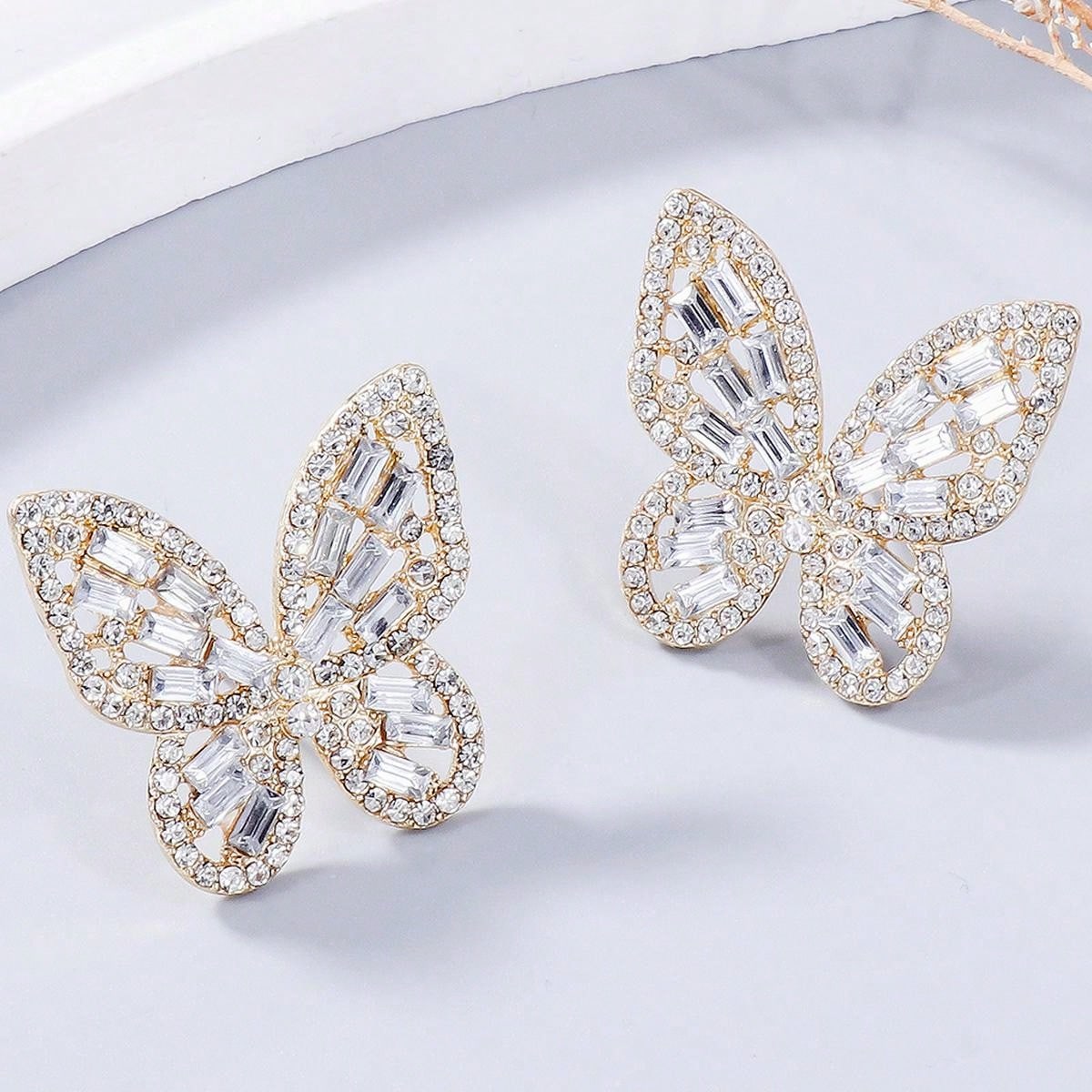 1pair Fashionable Butterfly Shaped Rhinestone Earrings