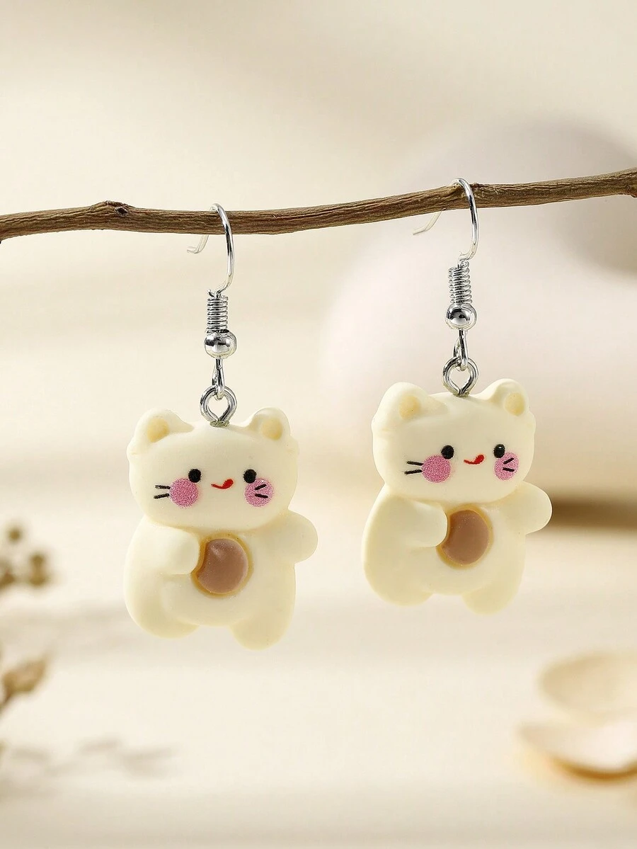 1pair Fashionable Colorful Cat Design Earrings As Gift For A Date