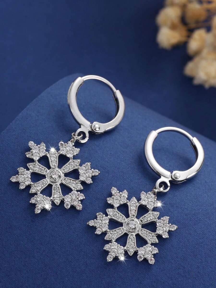 1pair Fashionable Cubic Zirconia Snowflake Stud Earrings For Women, Perfect For Daily Wear, Dating And Christmas Gift