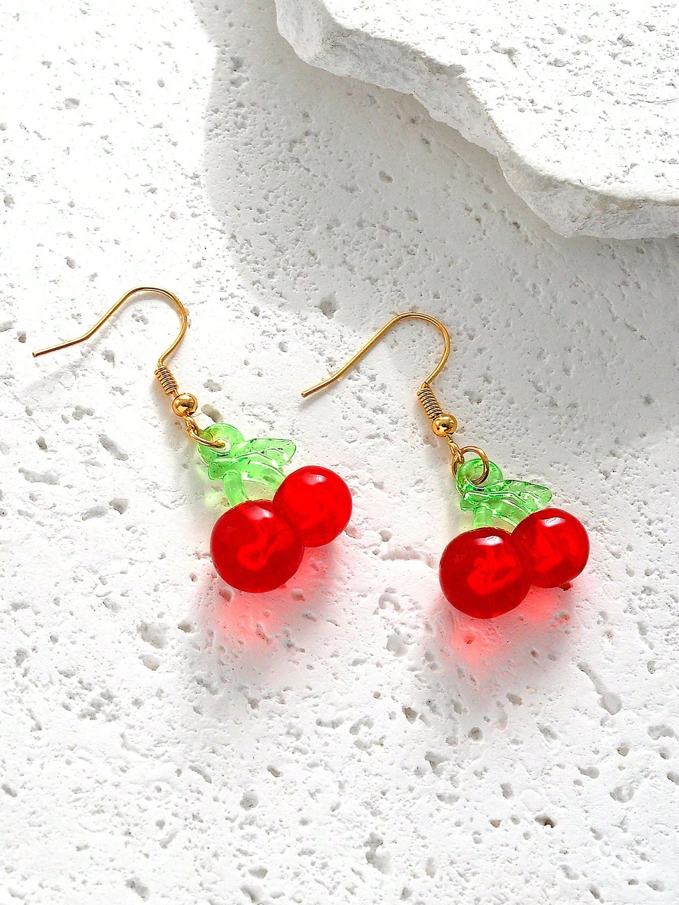 1pair Fashionable Cute Cherry Decor Earrings Suitable For Women'S Daily Wear