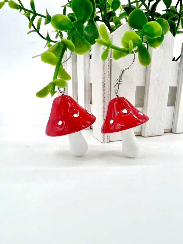 1pair Fashionable Cute Mushroom Shaped Drop Earrings