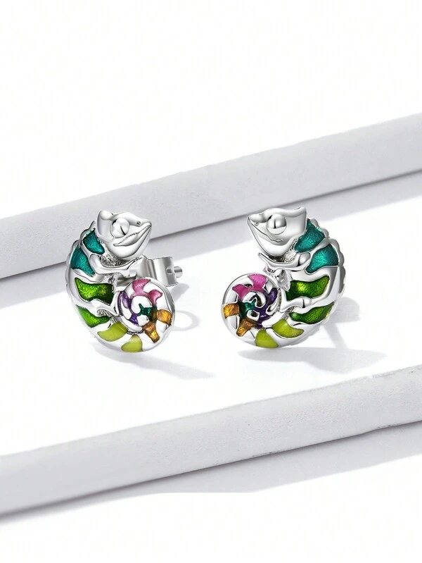 1pair Fashionable Enamel Art Colorful Dragon Design Stud Earrings Suitable For Women'S Daily Wear