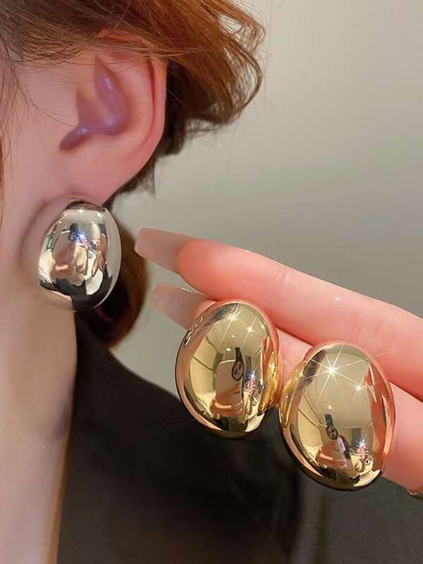 1pair Fashionable European & American Style Glossy Exaggerated Elliptical 3d Copper Earrings For Women