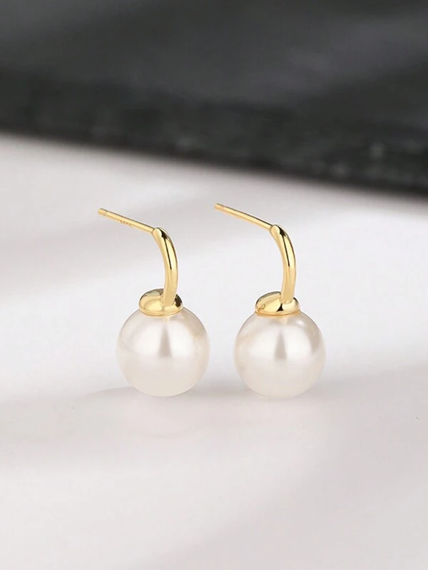 1pair Fashionable S925 Sterling Silver Pearl Stud Earrings, Suitable For Women'S Daily Wear, Wedding, Party, Personal Use