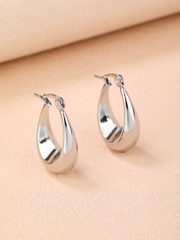 1pair Fashionable Titanium Steel Water Drop Shaped Ring Hoop Earrings, Best Gift