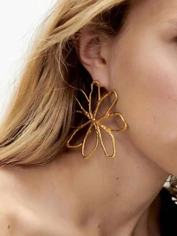 1pair Fashionable Zinc Alloy Textured Hollow Out Flower Stud Earrings For Women For Daily Decoration