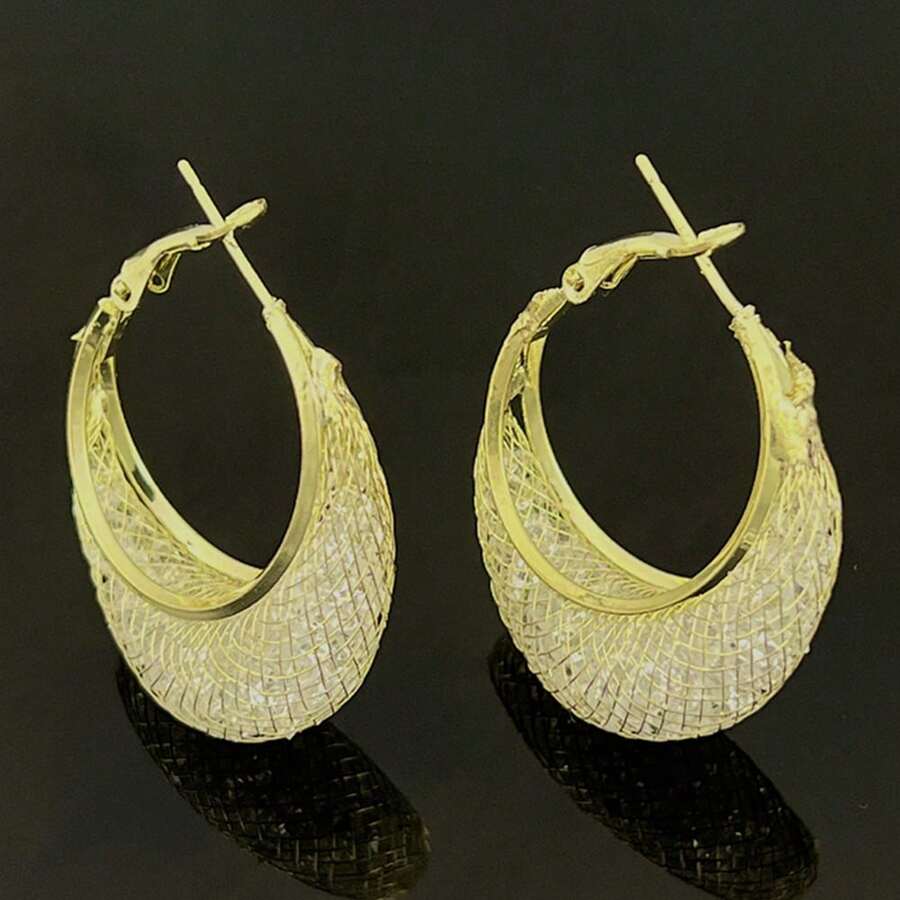 1pair French Style Mesh & Crystal Wrapped Earrings, Luxurious And High-End