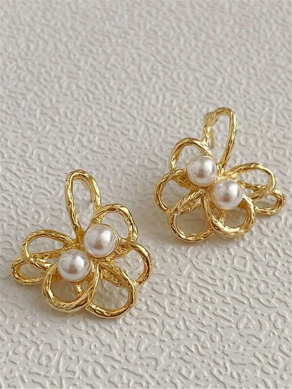 1pair Geometric & Irregular Shape Pearl Stud Earrings