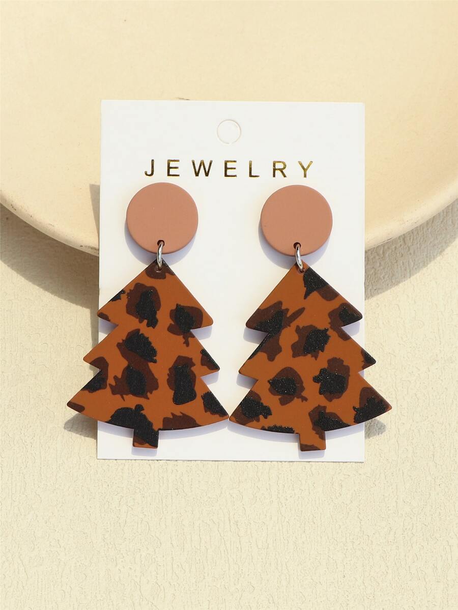 1pair Girls' Christmas Tree Shape Acrylic Earrings With Black Ink Block Prints, Ceramic Texture For Christmas Party