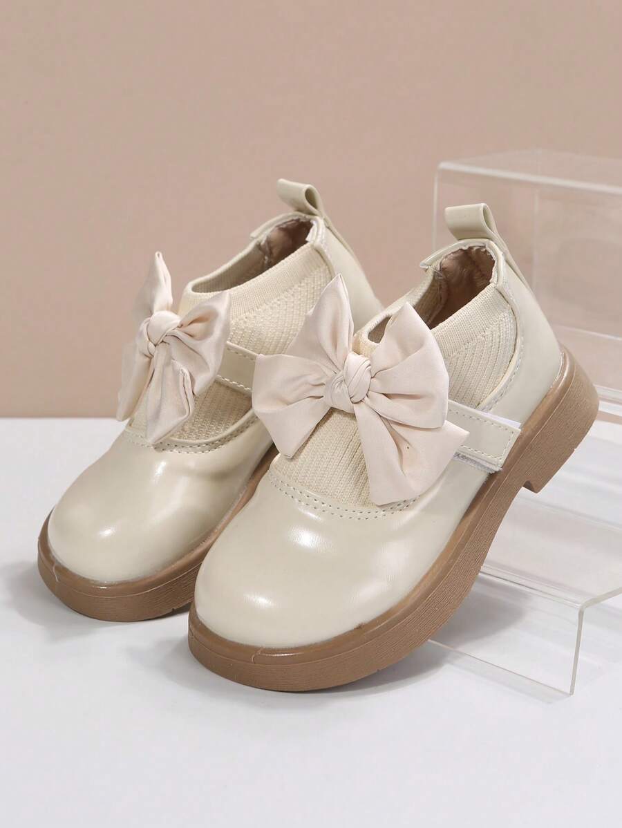 1pair Girls' Waterproof Pu Leather Mesh Bowknot High Top Flat Shoes With Cute And Sweet Design, Suitable For Spring, Summer And Autumn