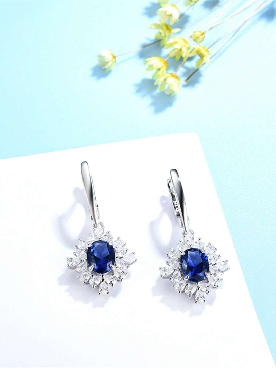 1pair Glamorous Cubic Zirconia Silver Drop Earrings For Women For Daily Decoration