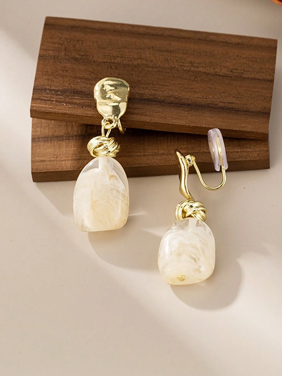 1pair Gold Tone French Style Faux Crystal Pendant Women's Earrings, Clip-On And Long Post Available