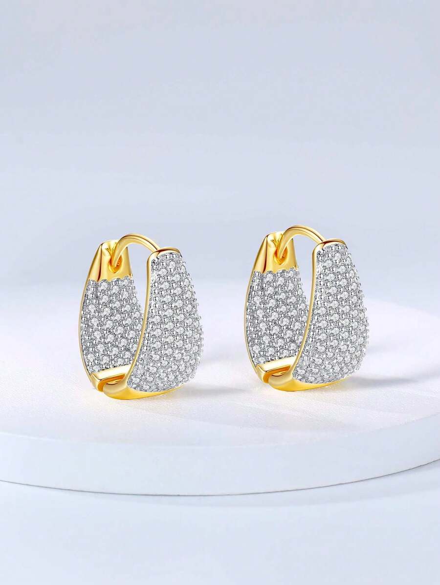 1pair Golden Plated Luxury Women'S Fashionable Earrings With Full