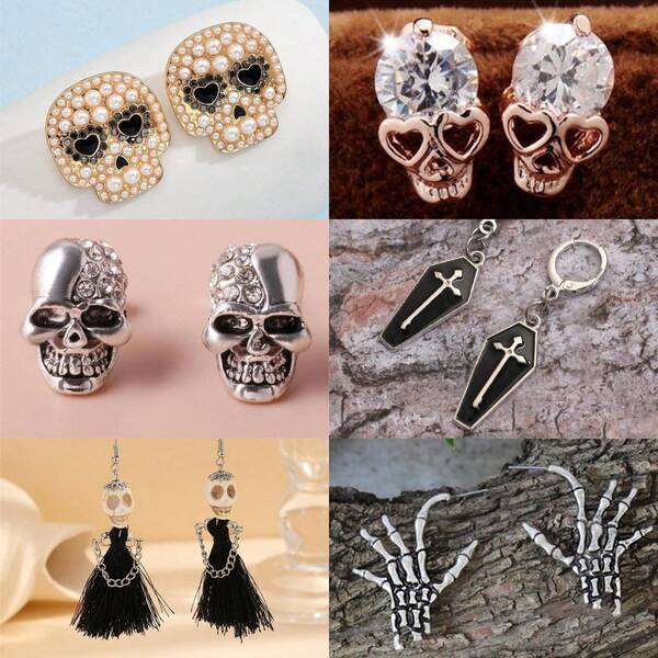 1pair Gothic Style Personality Cool Skull Design Earrings With Rhinestones, Pearl, Heart, Eye, Cross, Tassel, Claw Shaped Pendants For Women