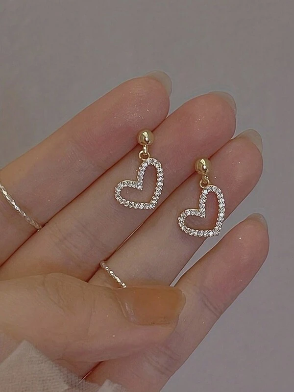 1pair Heart Shape Gold-Color Stud Earrings For Elegant And Stylish Girls