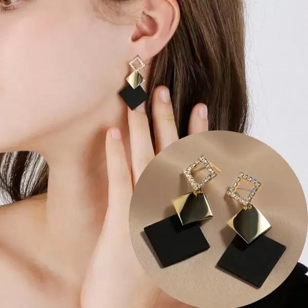 1pair High-End Diamond Shaped Stud Earrings, Fashionable Korean Style Long Earrings For Daily Wear And Halloween Gift