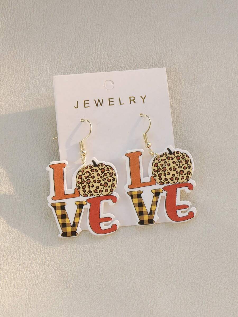 1pair Hip-Hop Brown Leopard Print Love Letter Acrylic Pendant Earrings For Women, Valentine'S Day Party