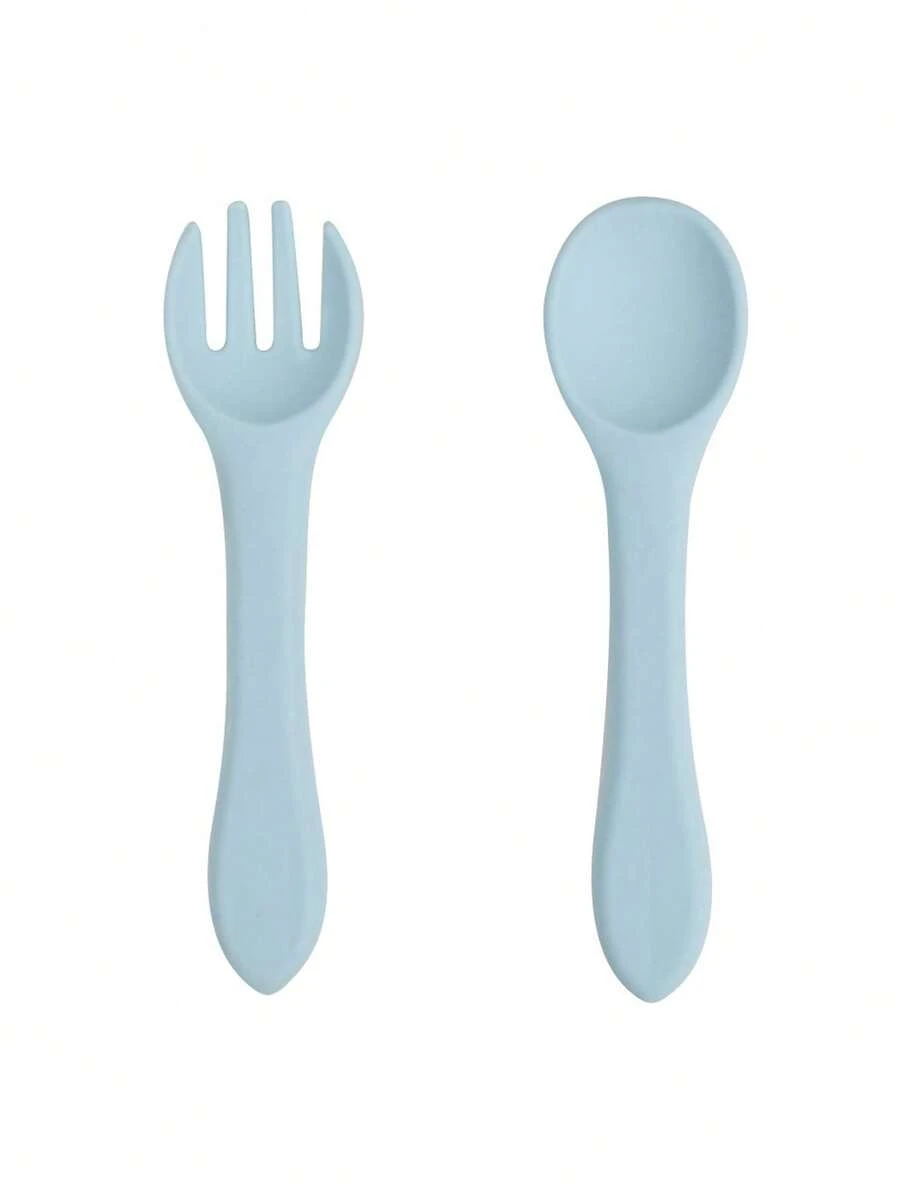 1pair Infant'S All Silicone Dropper Handle Baby Feeding Spoon And Fork Set