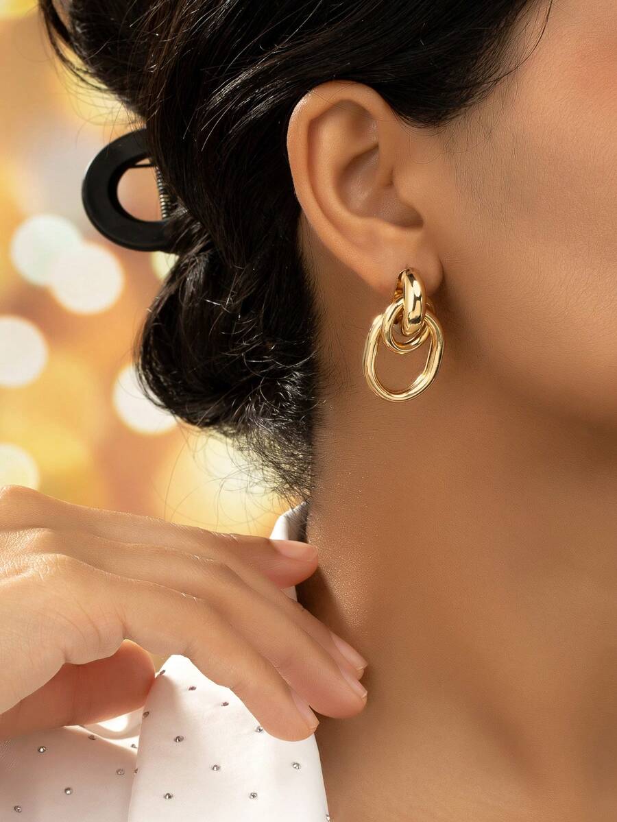 1pair Irregular Geometric Shape Vintage European American Style Metal-Texture Elegant Personality Stud Earrings