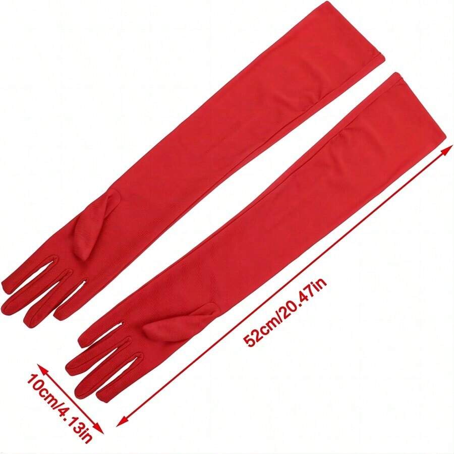 1pair Ladies' Bride Satin Long Gloves Solid Color Elastic Decorative Gloves For Party Wedding