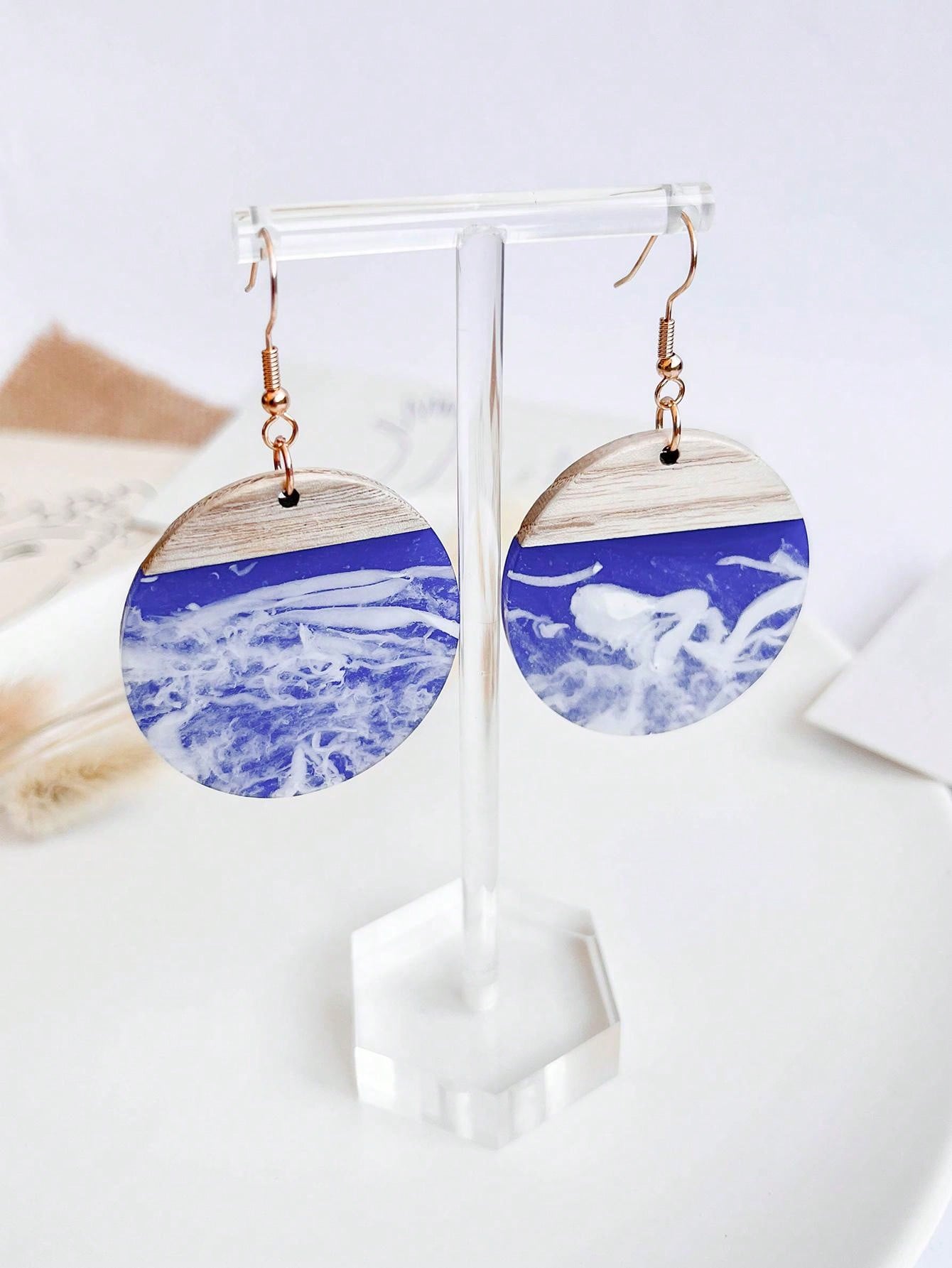1pair Ladies' Earrings Trendy Vintage Resin & Walnut Wood Stitching Design Fashionable Earrings
