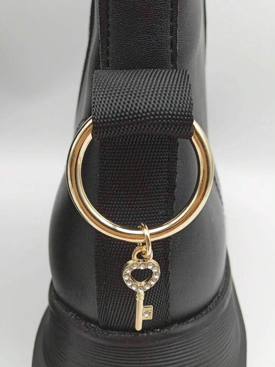1pair Love Heart & Key Shaped Rhinestone Decor Gold-Tone Alloy Charm Pendant For Diy Decoration On Bags, Shoes, Phones, Etc.