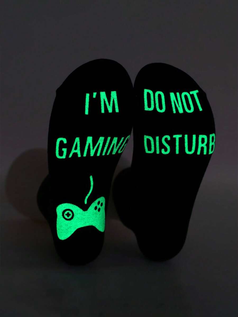 1pair Luminous Adhesive Letter Print Socks Unisex Gaming Mid-calf Socks
