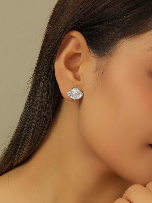 1pair Luxurious Heart Shaped Cubic Zirconia & 925 Silver Stud Earrings For Women, Perfect For Daily Wear And Dating, Gift