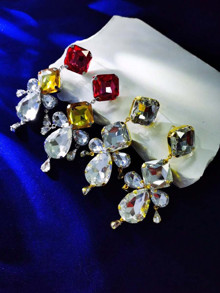 1pair Luxury Exaggerated Personalized Gemstone Pendant Earrings, Suitable For Women To Wear At Parties And Banquets