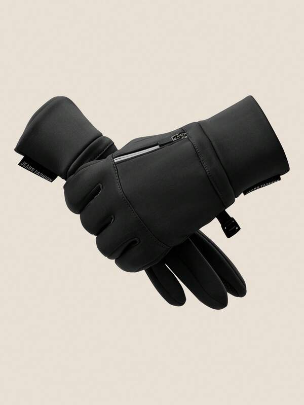 1pair Men's Black Nylon Blend Non-slip Warm Gloves, Suitable For Outdoor Cycling
