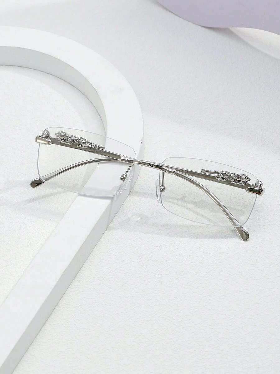 1pair Men's Sleek Silver Frameless Metal Square Fashionable Eyeglasses For Casual And Business Wear