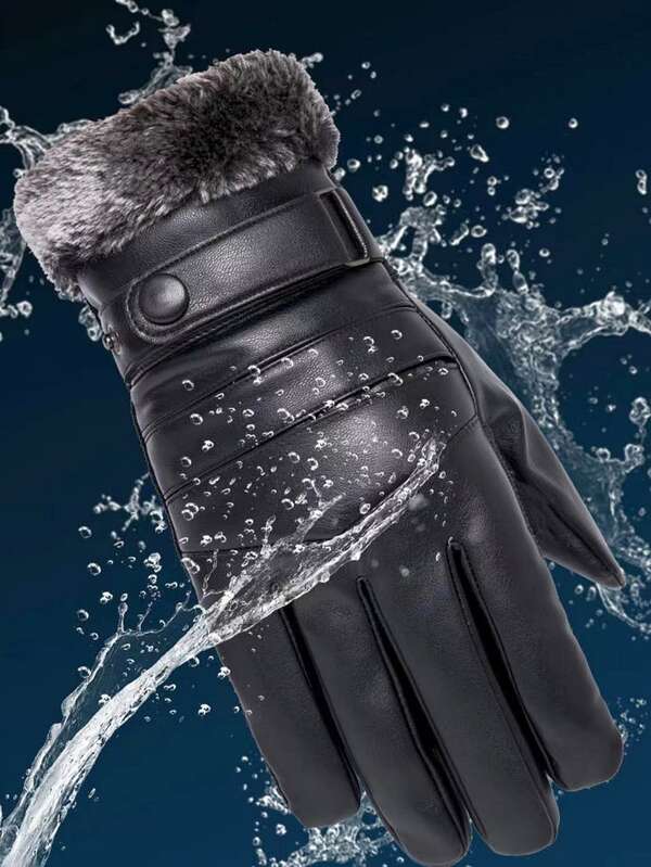 1pair Men's Waterproof Windproof Thermal Fluffy Lined Touch Screen Fashionable Cycling Driving Outdoor Gloves, Winter