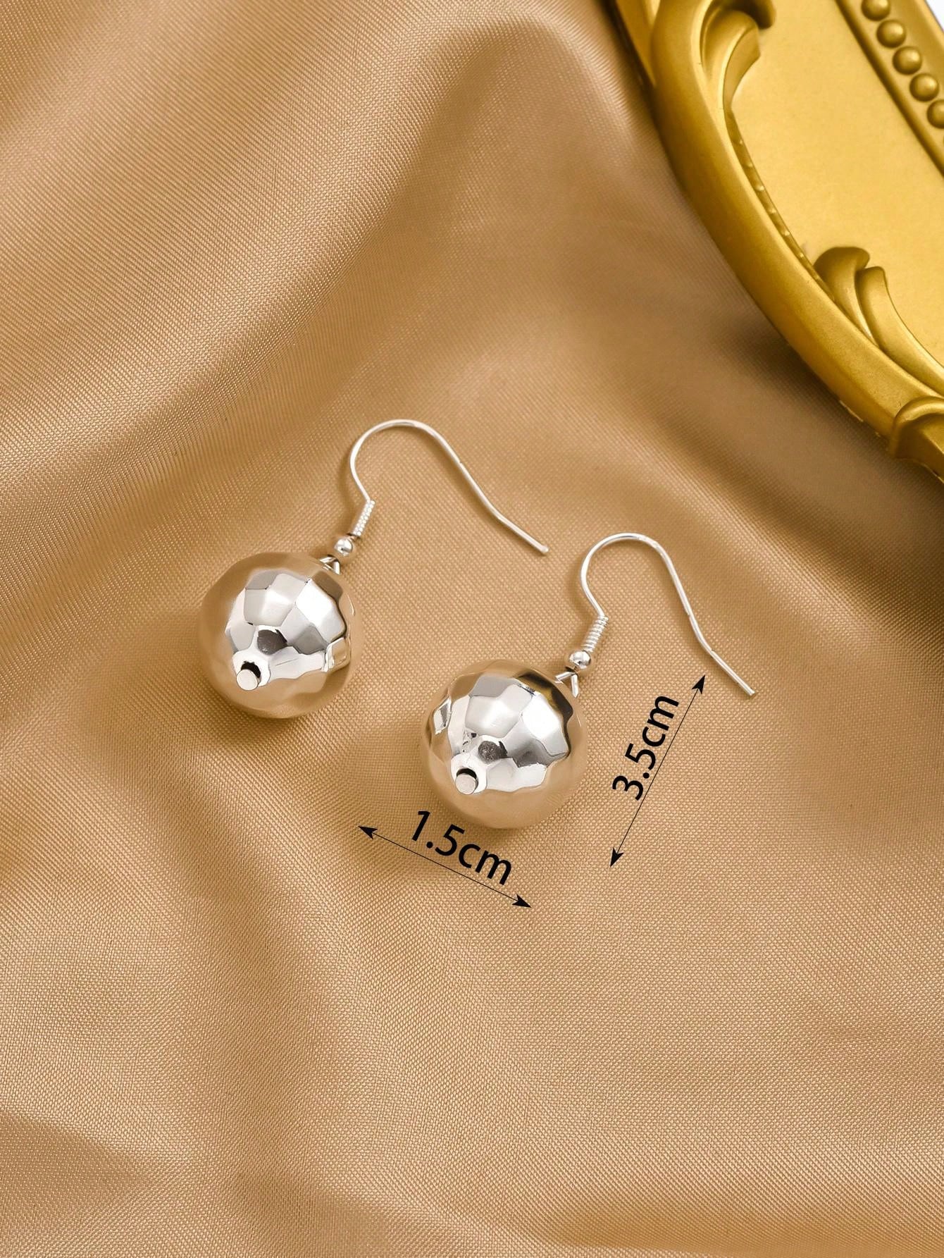 1pair Metallic Retro Stylish Simple Design Glass Ball Dangle Earrings, Perfect For Women'S Daily Wear