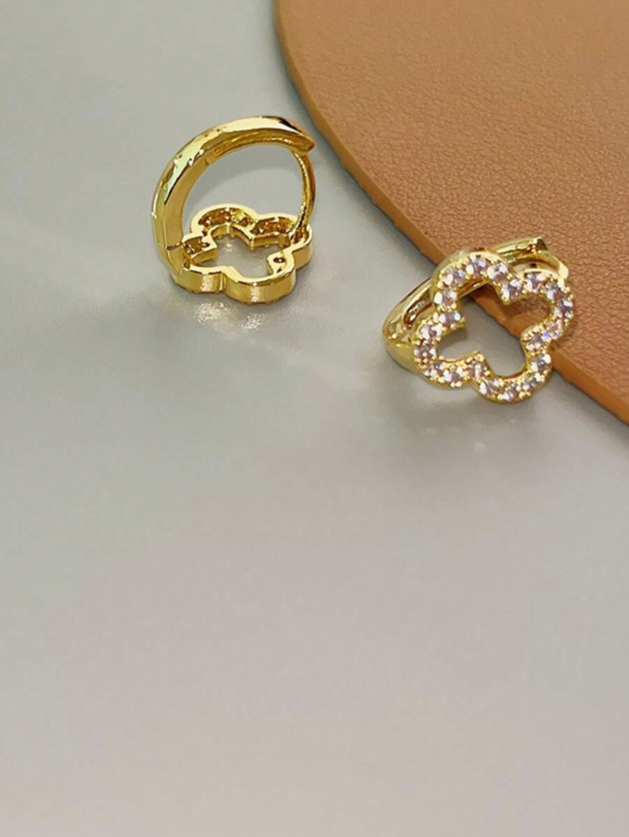 1pair Minimalist Four-leaf Clover Design Micro Zirconia Inlay Earrings For Women's Daily Office Wear