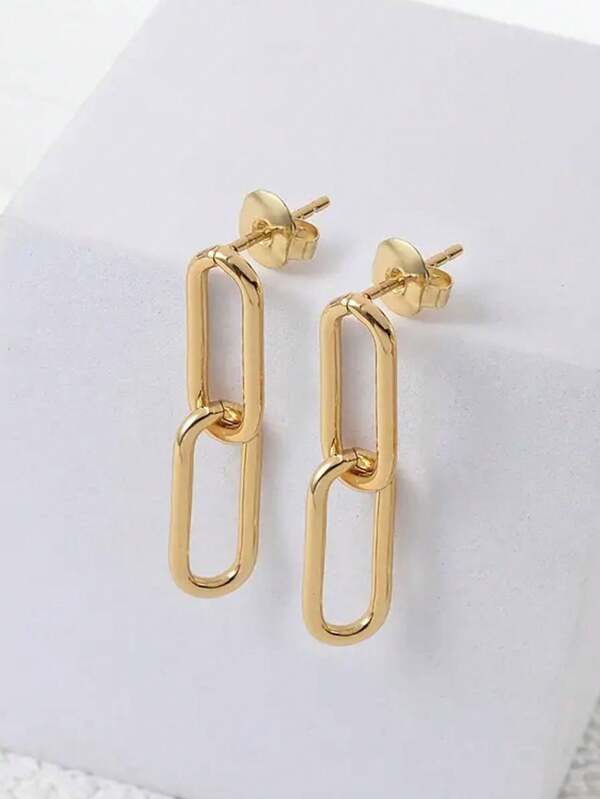 1pair Minimalist Stainless Steel Chain Earrings For Women Daily Decoration