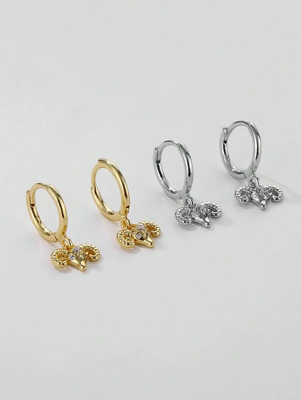 1pair Minimalistic Animal Sheep Head Shaped Earrings & Pendant Necklace, Versatile Fashion Accessory For Daily Wear, Gift