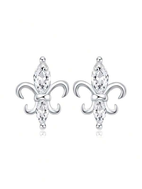1pair Mother'S Day/Music Festival Novelty Flower Design Zirconia & Silver Earrings, Fashionable Women'S Jewelry For Warm & Sweet Festival Gift