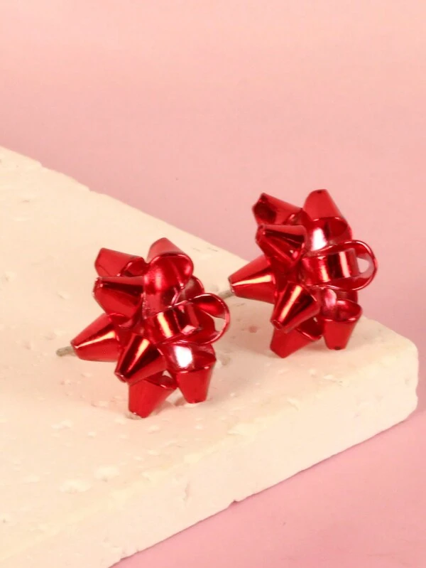 1pair New Christmas Earrings, Simple Metal Flower Christmas Stud Earrings