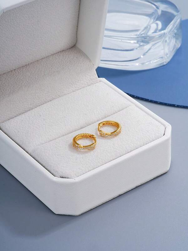 1pair New Small And Delicate S925 Silver Stud Earrings, Interlocking Cross Design And Inlaid Diamond And