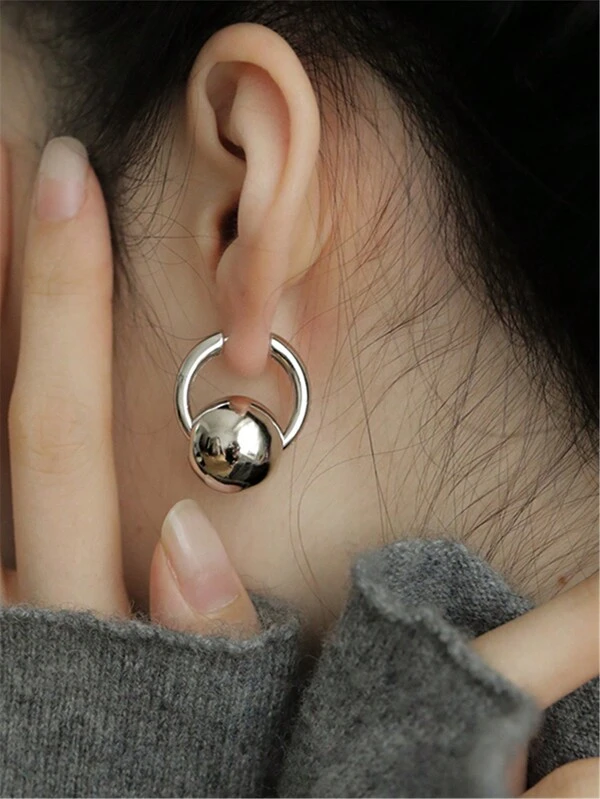 1pair Personalized Minimalist & Unique Design Metallic Sphere Stud Earrings For Women