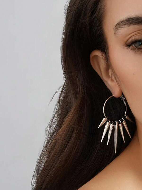 1pair Punk Style Black Spikes Cone & Geometric Shape Earrings For Women, Suitable For Daily Wear