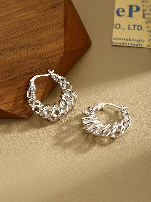 1pair S925 Silver Spiral Hollow Out Earrings, Unique European & American Minimalist Style Personalized Earrings, Suitable As A Gift For Women On Holidays Or Daily Wear