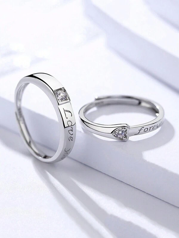 1pair S925 Sterling Silver & Zirconia Couple Rings, Suitable For Daily Wear And As Valentine's Day Gift For Lover
